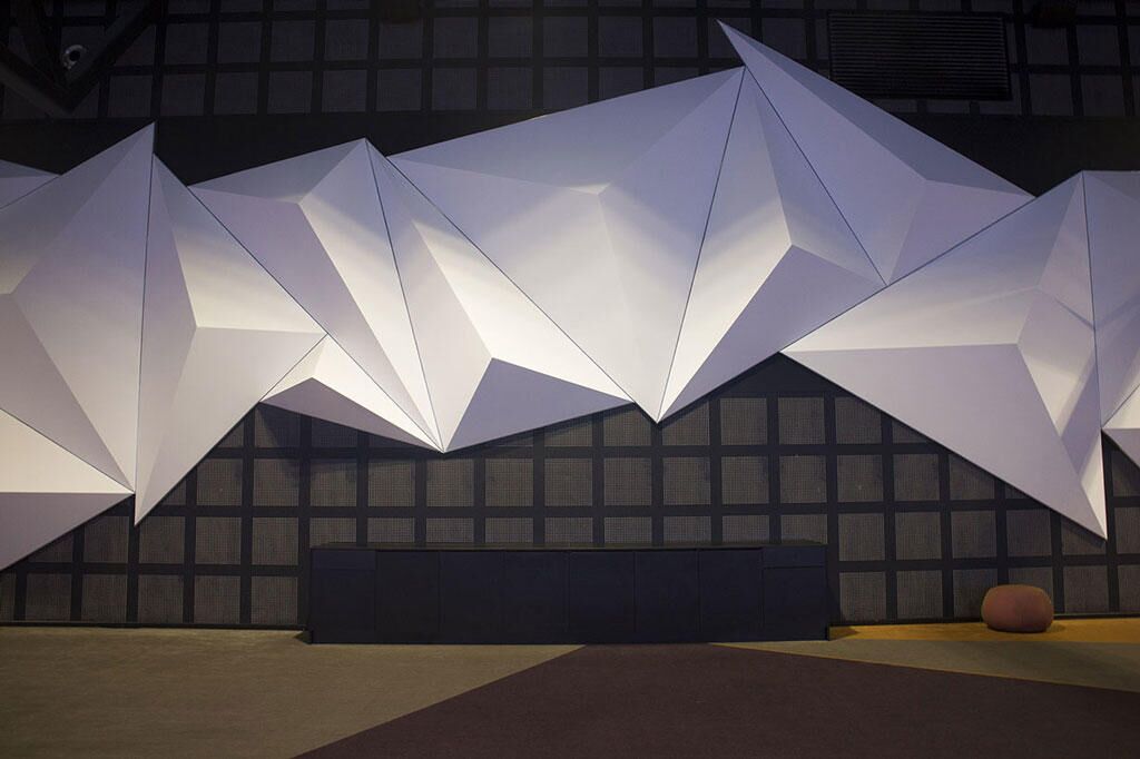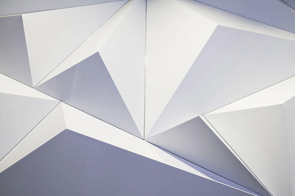 Project: 75 NEW/ACOUSTIC & NEW/3D walls (approximately 5,380 square feet total) using ACM15/white matte custom-perforated membranes with aluminum ghost profiles and double ghost dividers, and a concealed aluminum skeleton.